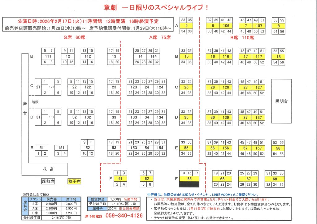 ・座椅子を除く料金は、前払いとなります。お渡しするチケットを公演日にご持参ください。