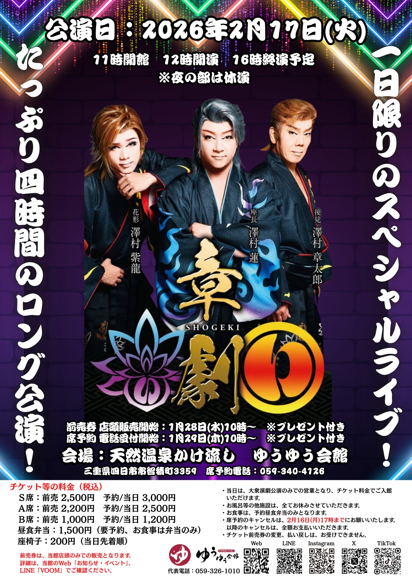 ・当日は大衆演劇公演のみでの営業、チケット料金でご入館いただけます。