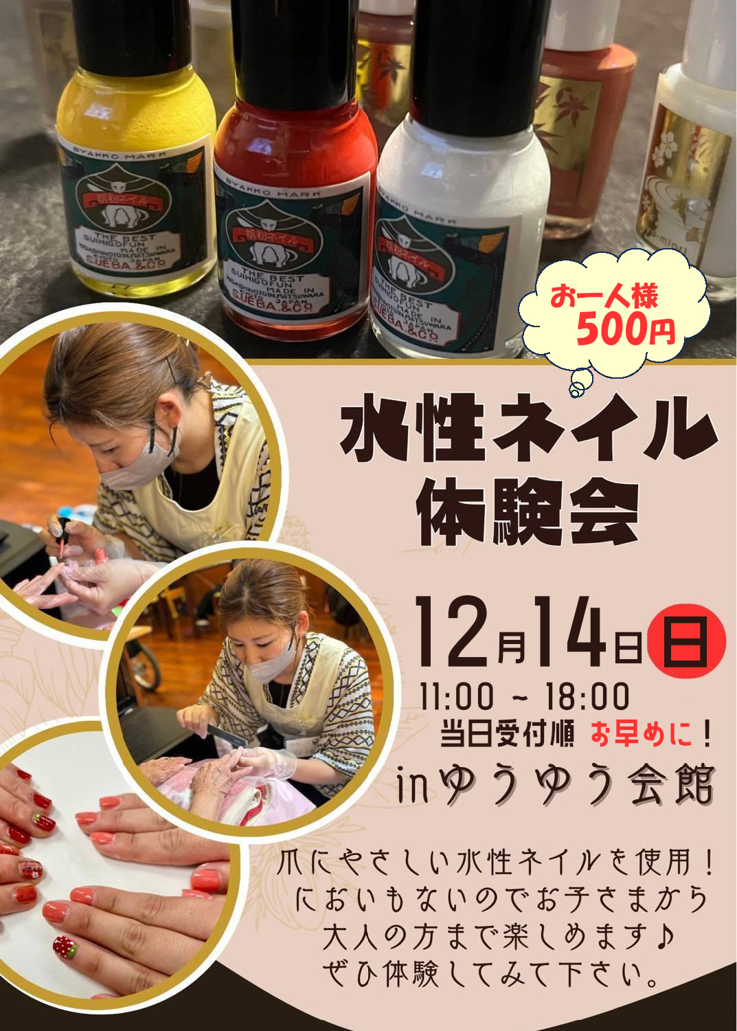 12月14日(日)爪にやさしい「水性ネイル体験会」開催!