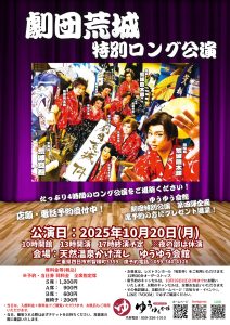 10月度大衆演劇公演「劇団荒城」による特別ロング公演を10月20日(月)開催します。