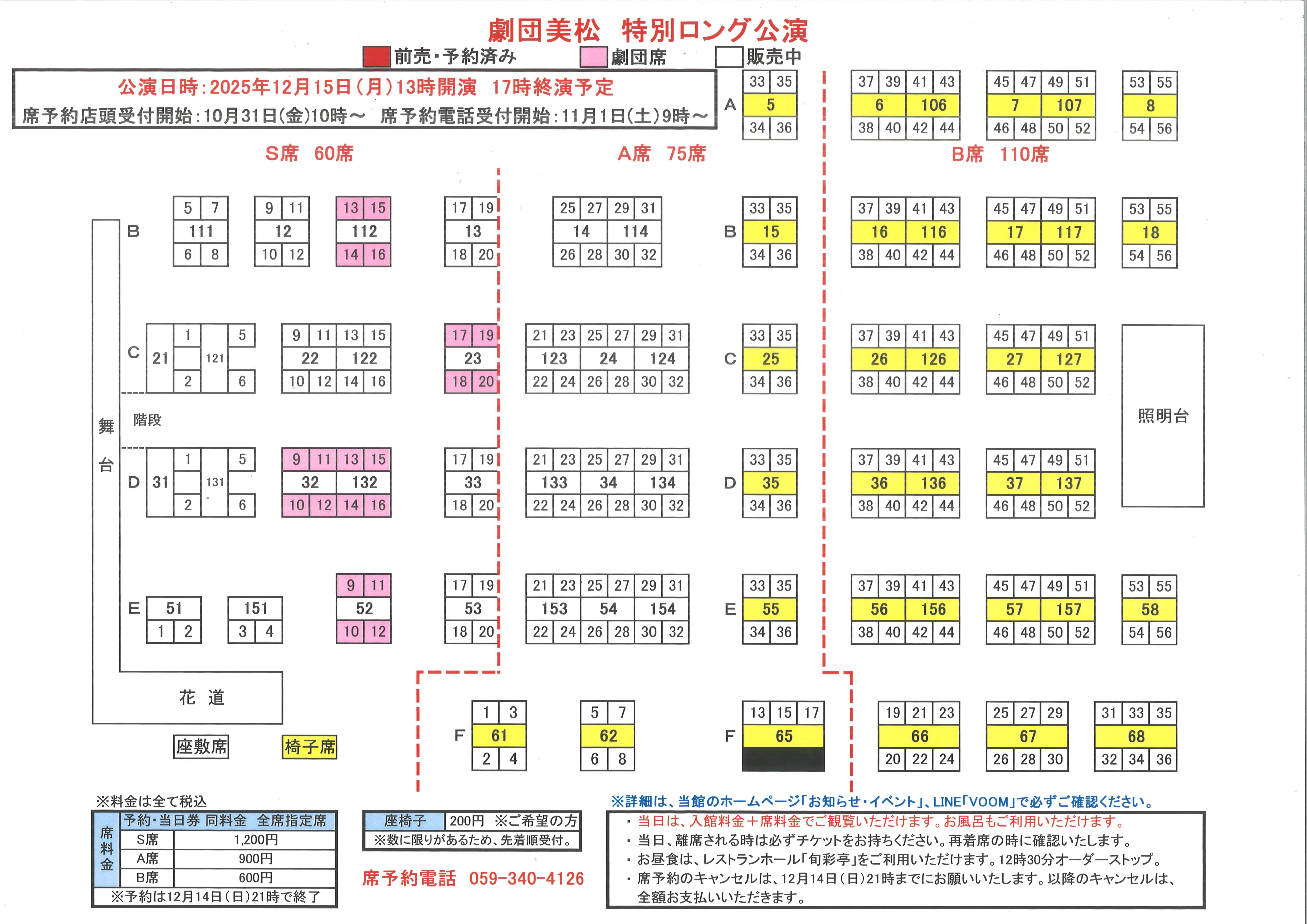 ・当日は、入館料金+席料金でご観覧いただけます。お風呂もご利用いただけます。