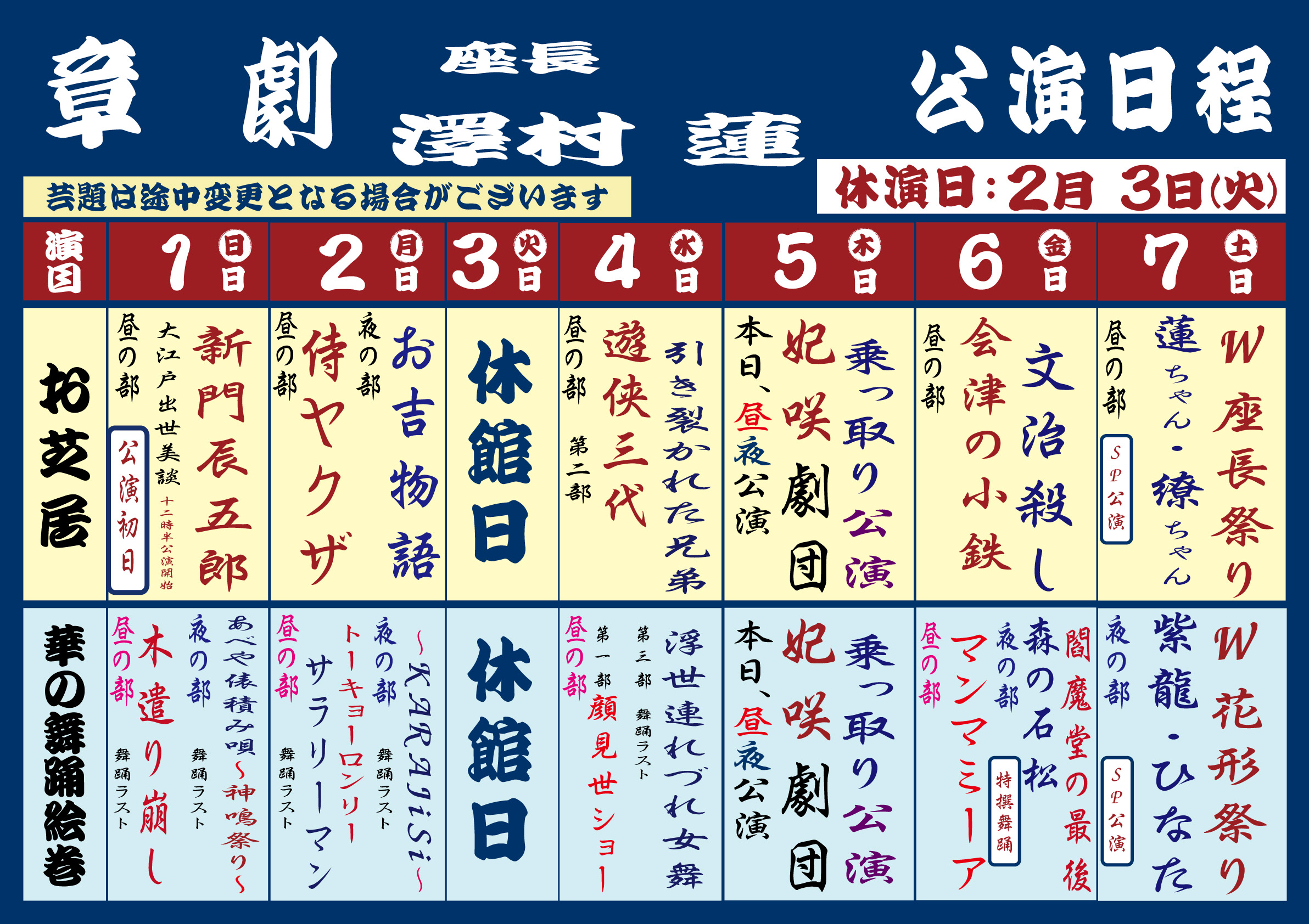 予告なく、演目が変更となる場合があります。ご了承ください。