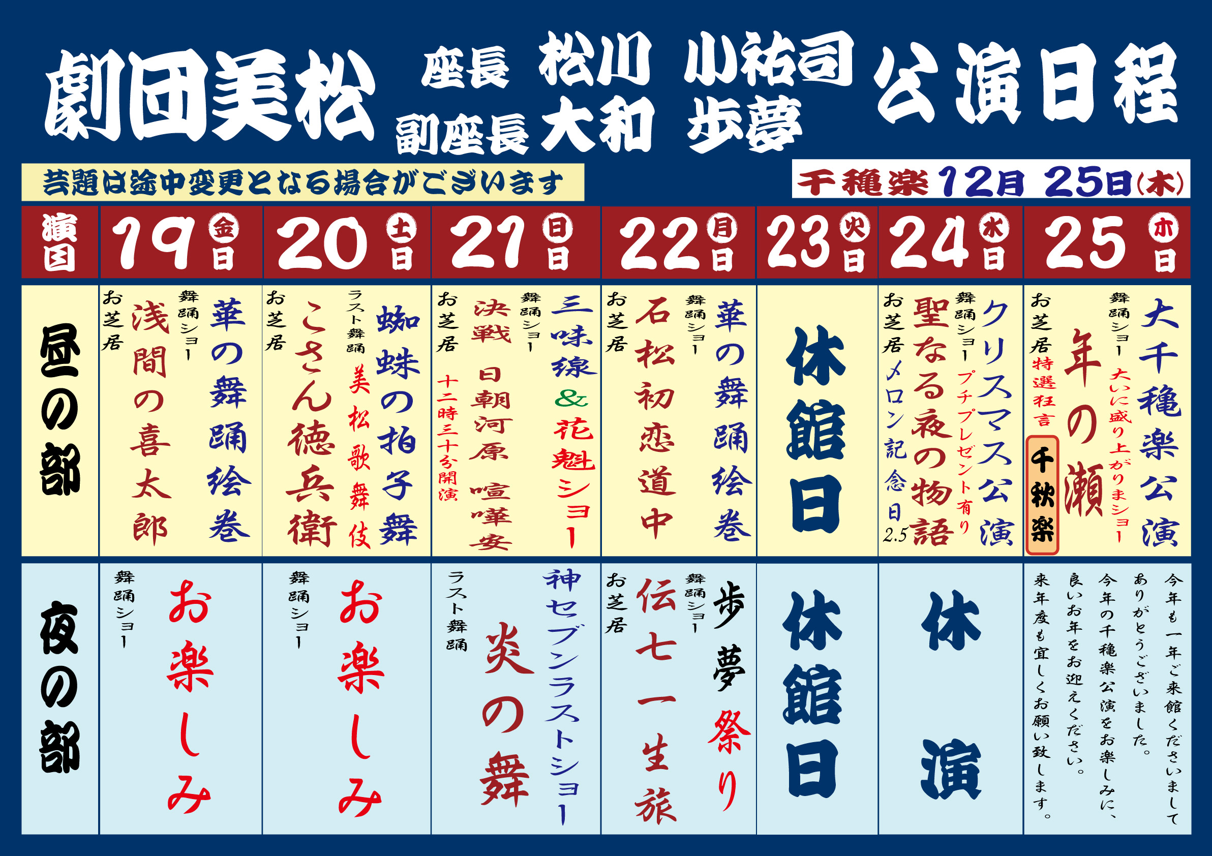 「劇団美松」12月19日(金)~25日(木)演目
