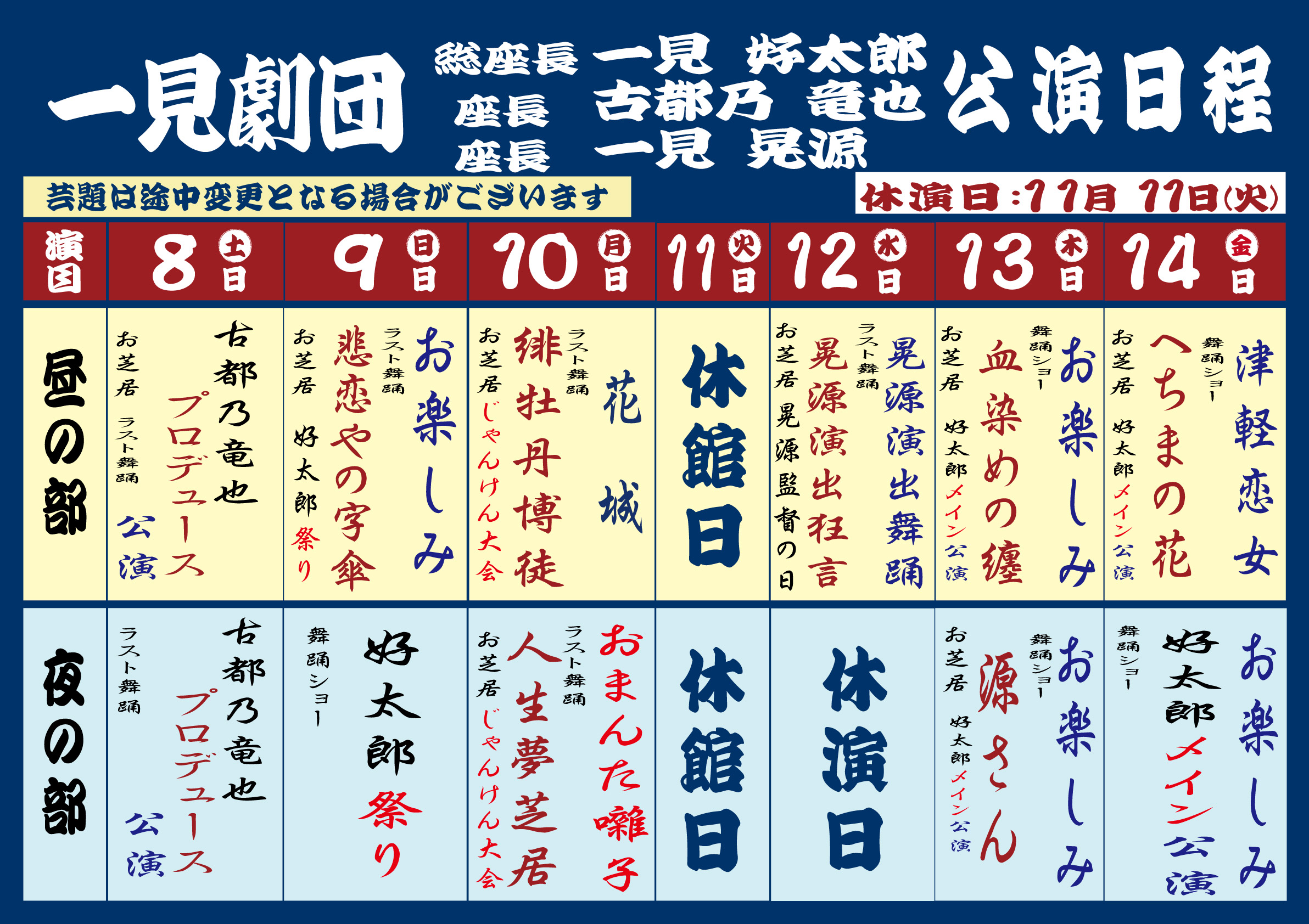 大衆演劇「三國座 一見劇団」11月8日(土)~14日(金)演目